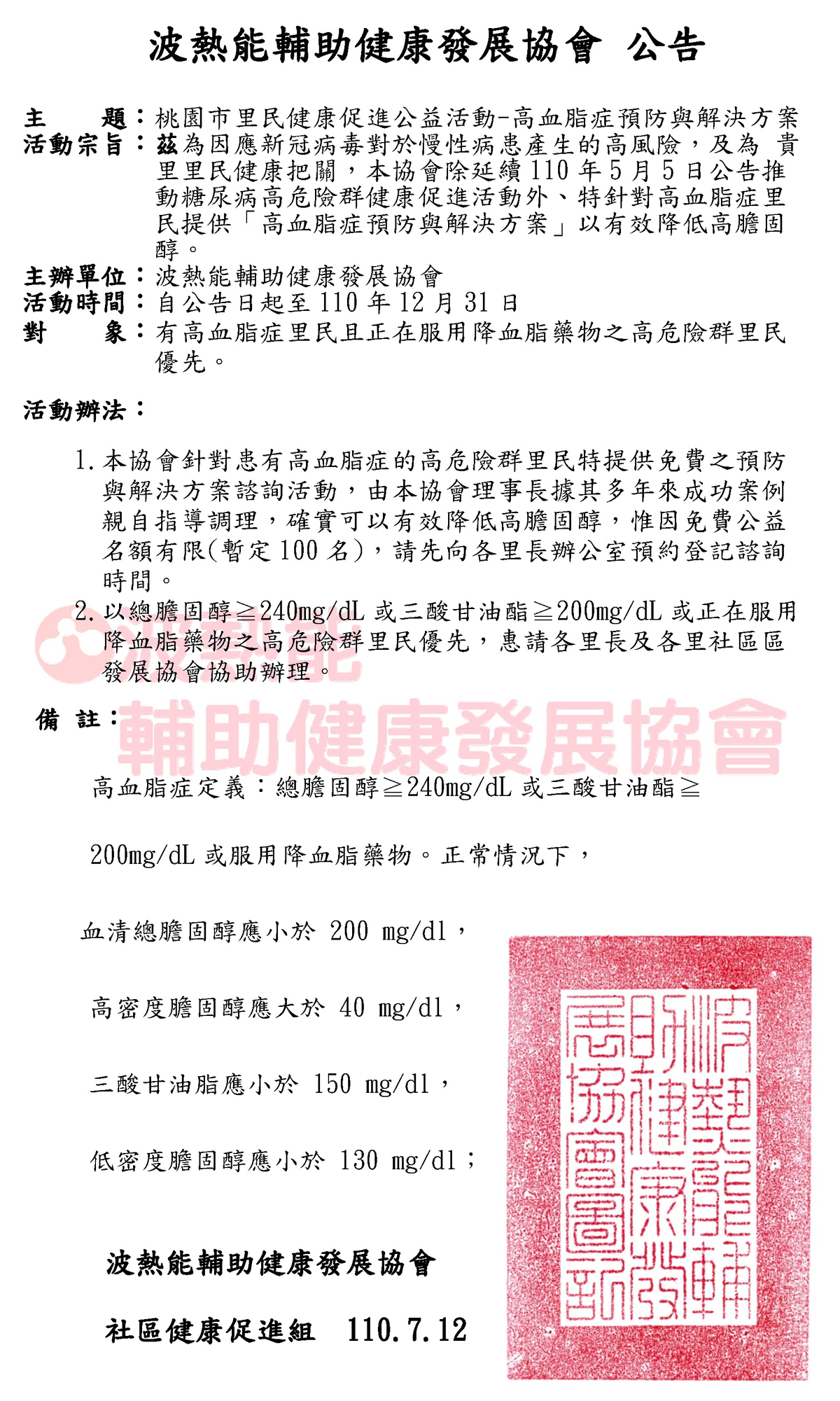 桃園市里民健康促進公益活動-高血脂症預防與解決方案_最新消息_台灣代謝症候群健康促進協會